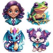 4 Adet 10x10 Cm Sticker Çocuk Etiket Seti V4 Çok Renkli