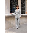 4 Düğmeli Kruvaze Geniş Çizgili Takım Açık Gri Açık Gri