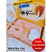 4 Kat Müslin Mint Yeşil Saçaklı Bebek Battaniyesi 100x120 Cm- %100 Pamuklu & Çok Amaçlı Battaniye Sütlü Kahve