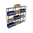 4 Katlı 3'lü Gri Renk Çelik Raf - Depo, Arşiv, Kiler, Dosya, Dosya Rafı 31x93 Cm-200 Cm Gri