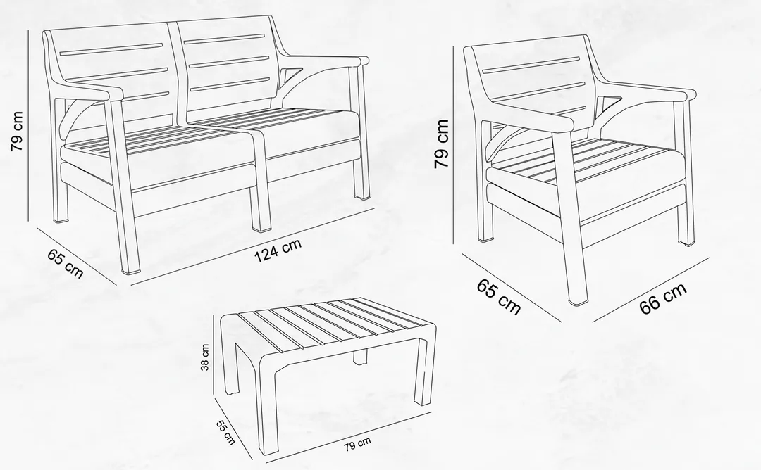 Lara 3+1+1 S Bahçe Balkon Takımı - Antrasit Gri