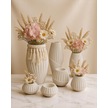 4 Lü Çizgili Dekoratif Vazo Seti El Yapımı Özgün Tasarım Beyaz