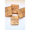 4 Lü Ham 1. Sınıf Masif Ahşap El Yapımı Mektup Desenli Bardak Alt Kahverengi