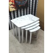 4 Lü Mdf Lam Ahşap Zigon Sehpa Beyaz Mermer