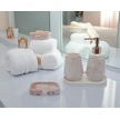 4 Lü Taş Banyo Seti Beyaz - Kahverengi Mermer Desenli 4'lü Sabunluk Seti Beyaz
