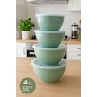 4 Lü Yuvarlak Kase Seti Mint Yeşili 1l, 1.5l, 2.3l, 3.3l Kapaklı Çok Amaçlı Mutfak Saklama Kabı Yeşil