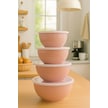 4 Lü Yuvarlak Kase Seti Pembe 1l, 1.5l, 2.3l, 3.3l Kapaklı Çok Amaçlı Mutfak Saklama Kabı Pembe