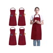 4 Paket Şef Önlüğü, 2 Cepli Ayarlanabilir Önlük, Unisex Kişisel Koyu Kırmızı, Diğer