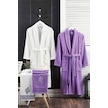 4 Parça Aile Bornoz Seti Kadın Erkek Havlulu Bornoz Takımı Lavanta-beyaz