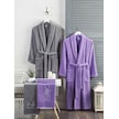 4 Parça Aile Bornoz Seti Kadın Erkek Havlulu Bornoz Takımı Lavanta - Gri