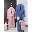 4 Parça Aile Bornoz Seti Kadın Erkek Havlulu Bornoz Takımı Pembe-lacivert