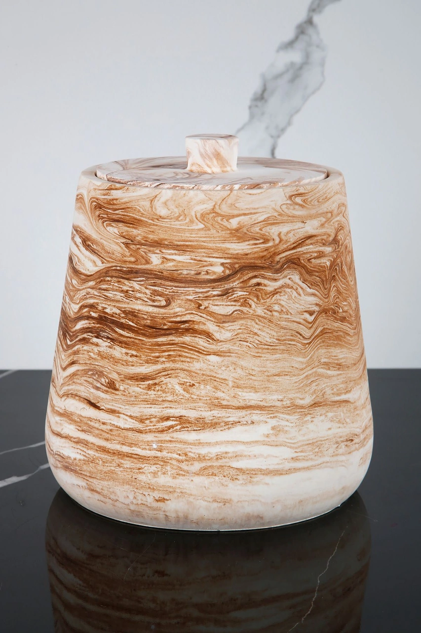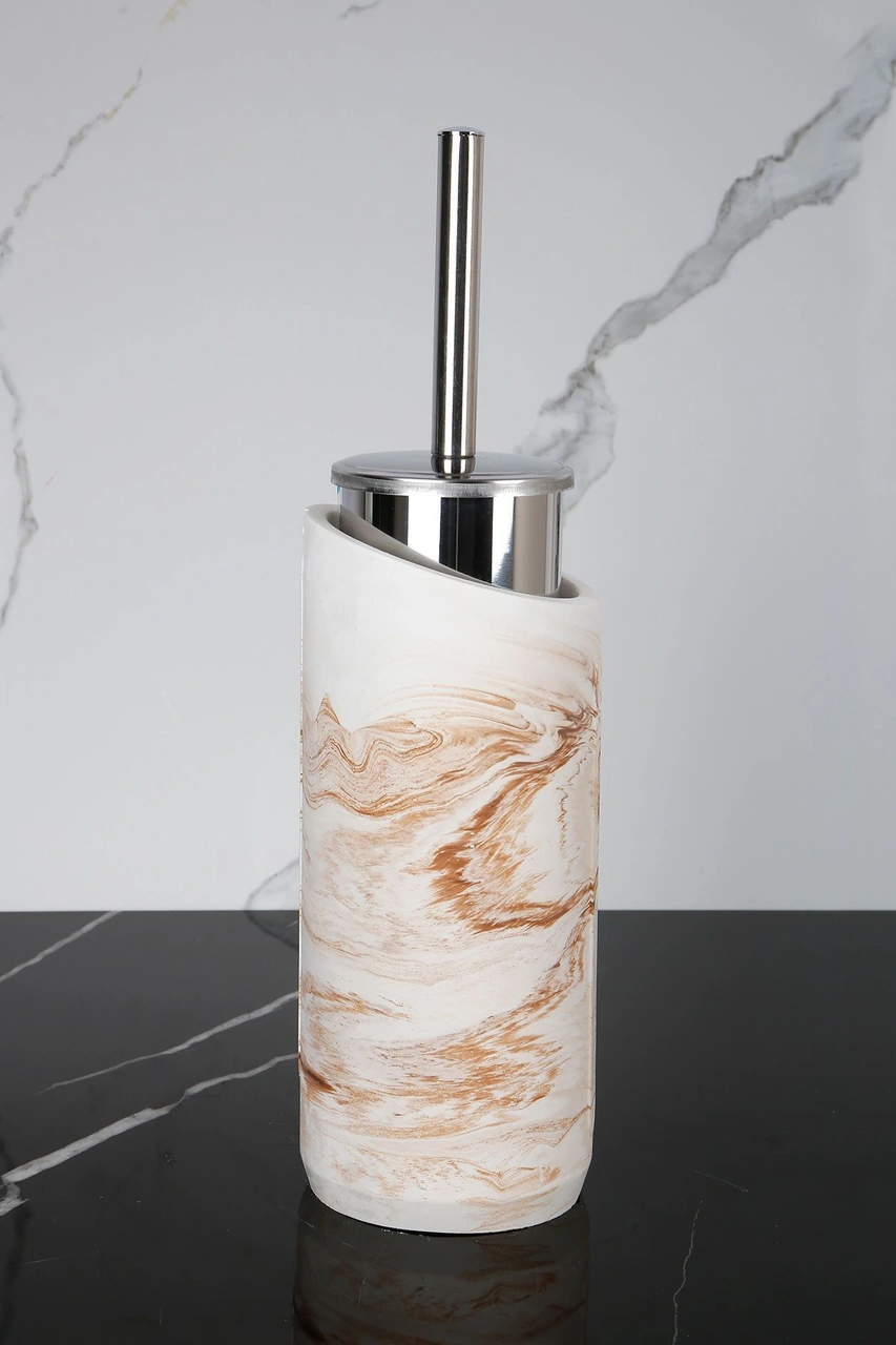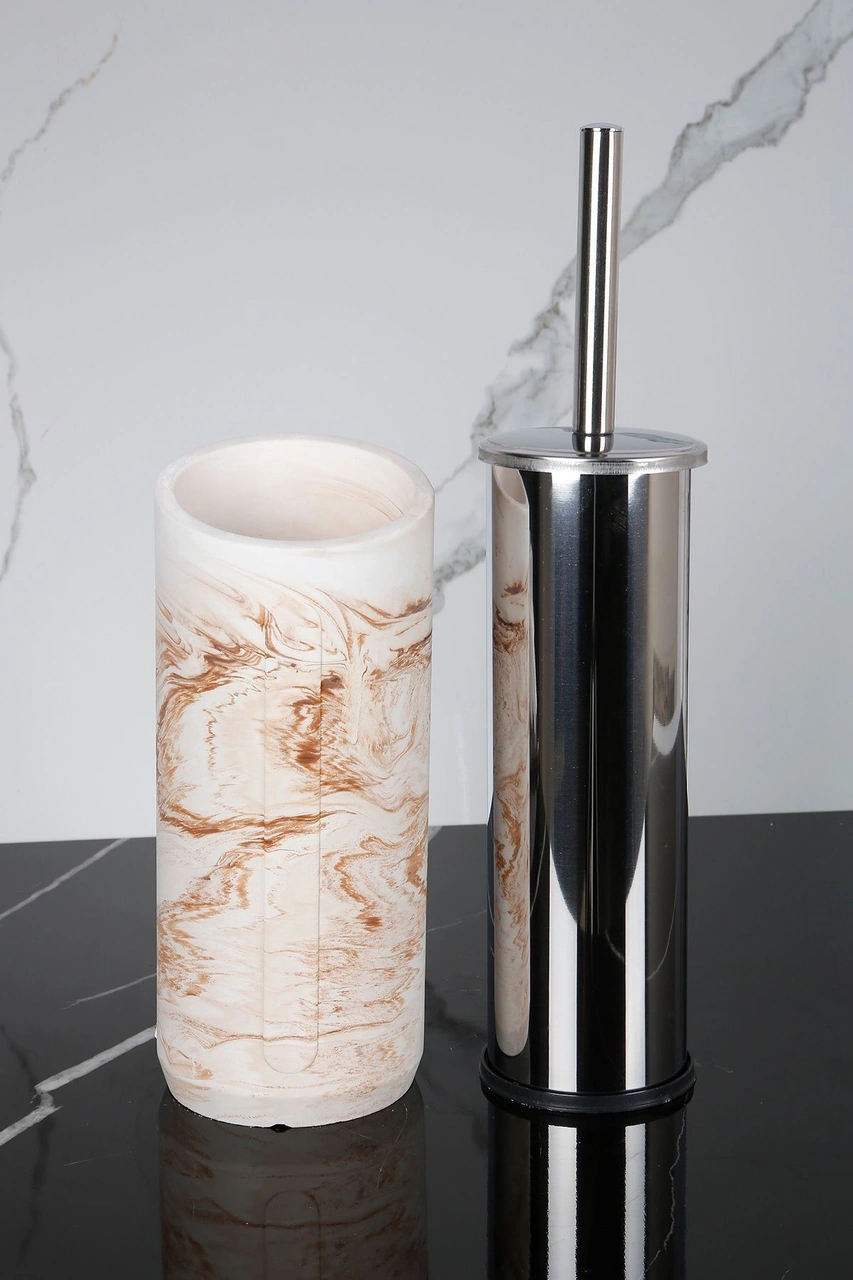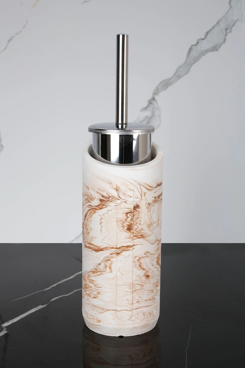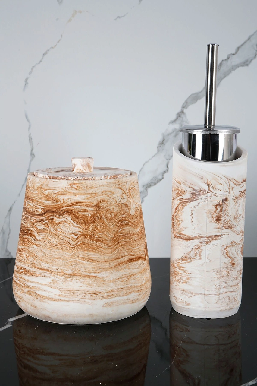 4 Parça Mermer Desenli Beton Banyo Wc Seti Tuvalet Fırçası Çöp Kovası 4 Litre Mermer Deseni
