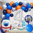 4 Yaş Uzay Temalı Doğum Günü Seti Uzay Mekiği Happy Birthday Yazı Renkli Balonlar Gümüş Folyo Rakam Çok Renkli