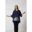 4048 Şifon -simli Dantel Kombinli Büyük Beden Bluz Lacivert Lacivert