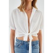 4230 Kadın Bağlamalı Yazlık Keten Gömlek Beyaz Beyaz