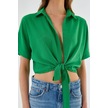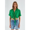 4230 Kadın Bağlamalı Yazlık Keten Gömlek Yeşil Yeşil