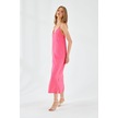 4252 Kadın İp Askılı V Yaka Elbise Fuşya Fuşya