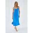 4252 Kadın İp Askılı V Yaka Elbise Saks Mavi Saks Mavi