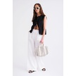 4286 Kadın Bol Paça Beli Lastikli Müslin Palazzo Pantolon Beyaz Beyaz