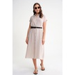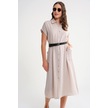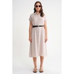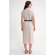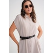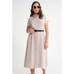 4453 Kadın Keten Cepli Midi Kemerli Elbise Taş Taş