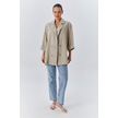 4550 Kadın Yanları Yırtmaçlı Keten Uzun Ceket Naturel Naturel