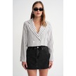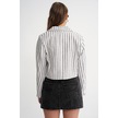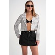 4641 Kadın Keten Çizgili Crop Ceket Siyah Siyah