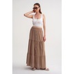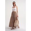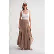 4662 Kadın Düğme Detaylı Büzgülü Modal Etek Toprak Toprak