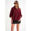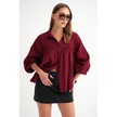 4677 Kadın Dantel Detaylı Müslin Gömlek Bordo Bordo