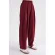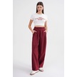 4682 Kadın Beli Lastikli Jogger Bol Keten Pantolon Bordo Bordo