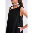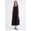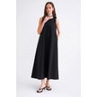 4690 Kadın Bisiklet Yaka Sıfır Kol Midi Paraşüt Elbise Siyah Siyah