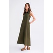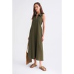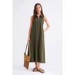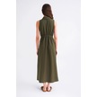 4692 Kadın Gömlek Yakalı Fermuarlı Midi Boy Oxford Elbise Haki Haki