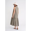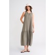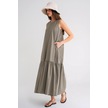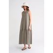 4695 Kadın Eteği Pileli Fermuar Detaylı Uzun Paraşüt Elbise Haki Haki