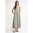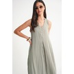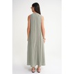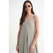 4700 Kadın V Yaka Önü Pileli Elbise Çağla Çağla Yeşili
