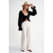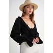 4712 Kadın Volanlı Modal Bolero Bluz Siyah Siyah
