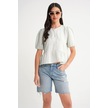 4713 Kadın Beli Büzgülü Kolu Lastikli Bol Müslin Bluz Adaçayı Adaçayı