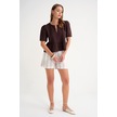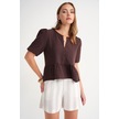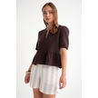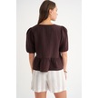 4713 Kadın Beli Büzgülü Kolu Lastikli Bol Müslin Bluz Kahve Kahve
