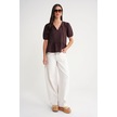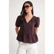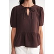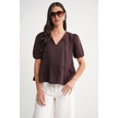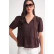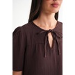 4715 Kadın Yakası Bağlamalı Kısa Kol Müslin Bluz Kahve Kahve