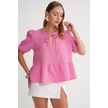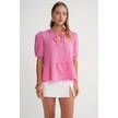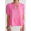 4715 Kadın Yakası Bağlamalı Kısa Kol Müslin Bluz Pembe Pembe