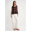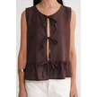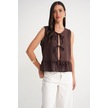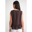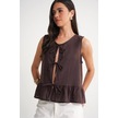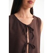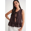 4717 Kadın Önü Bağcıklı Fırfırlı Kolsuz Keten Bluz Kahve Kahve