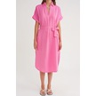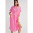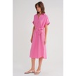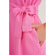 4720 Kadın Pile Detaylı Bağlamalı V Yaka Müslin Elbise Pembe Pembe