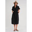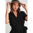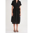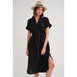 4720 Kadın Pile Detaylı Bağlamalı V Yaka Müslin Elbise Siyah Siyah
