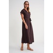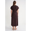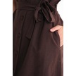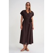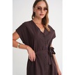 4721 Kadın V Yaka Düğme Detaylı Keten Elbise Kahve Kahve