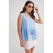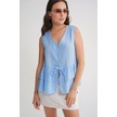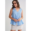 4722 Kadın V Yaka Fırfırlı Müslin Bluz Bebe Mavi Bebe Mavi