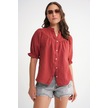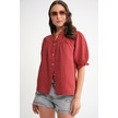 4725 Kadın Büzgü Robalı Kolu Fırfırlı Müslin Gömlek Kızılcık Kızılcık