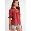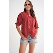 4725 Kadın Büzgü Robalı Kolu Fırfırlı Müslin Gömlek Kızılcık Kızılcık