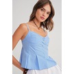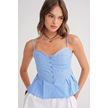 4737 Kadın Düğmeli Kuplu Pileli Bluz Mavi Mavi