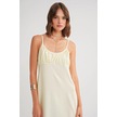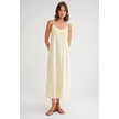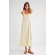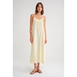 4742 Kadın İp Askılı Büzgü Detaylı Midi Elbise Sarı Sarı