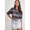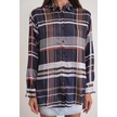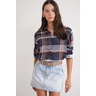 4751 Kadın Ekose İnce Saten Gömlek Lacivert Lacivert