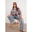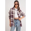 4752 Kadın Oversize Ekose Gömlek Bordo Bordo