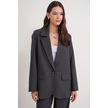 4753 Kadın Çizgili Oversize Blazer Ceket Antrasit Antrasit